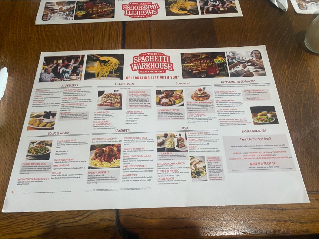 With attentive service and a welcoming atmosphere, Spaghetti Warehouse invites you to share flavorful dishes with family and friends. Whether it's a casual meal or an indulgent feast, you're guaranteed a memorable dining experience.